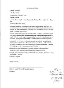 O Jornal Visão, sabe que as cartas foram dirigidas para UNITA, FNLA, Partido Liberal, PRAJA-Servir Angola, PRS, Bloco Democrático e o partido Humanista de Angola.